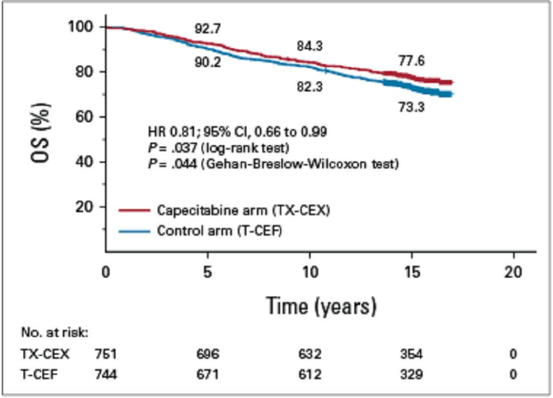 [1]Joensuu H, Kellokumpu-Lehtinen PL, Huovinen R, et al. Adjuvant Capecitabine for Early Breast Cancer: 15-Year Overall Survival Results From a Randomized Trial [published online ahead of print, 2022 Jan 12]. J Clin Oncol. 2022;JCO2102054. doi:10.1200/JCO.21.02054