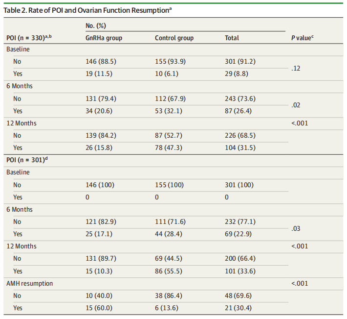 [3]Zong X, Yu Y, Yang H, et al. Effects of Gonadotropin-Releasing Hormone Analogs on Ovarian Function Against Chemotherapy-Induced Gonadotoxic Effects in Premenopausal Women With Breast Cancer in China: A Randomized Clinical Trial [published online ahead of print, 2021 Dec 30]. JAMA Oncol. 2021;10.1001/jamaoncol.2021.6214. doi:10.1001/jamaoncol.2021.6214
