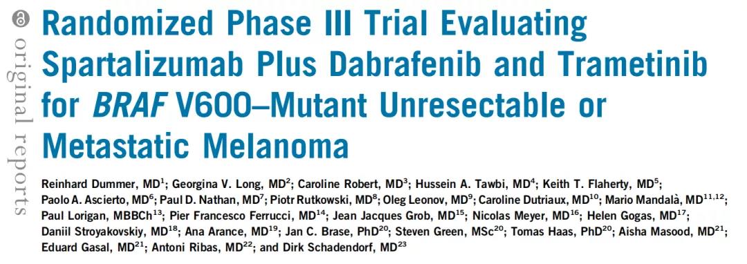Reinhard Dummer,Georgina V. Long , Caroline Robert, et al.Randomized Phase III Trial Evaluating Spartalizumab Plus Dabrafenib and Trametinib for BRAF V600–Mutant Unresectable or Metastatic Melanoma.https://ascopubs.org/doi/full/10.1200/JCO.21.01601