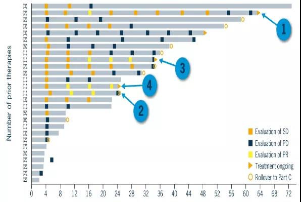 研究共入组27例患者接受Nemvaleukin单药治疗(B部分),4/21例(1确认,1未确认,2待确认)获得PR,11例获得SD,4例患者治疗大于1年。Part B中PD的10例患者进入C部分,可评价的8例患者中获得1例PR,治疗时间超过1年,其余5例为SD。最常见的不良反应有发热(59.3%)、寒战(55.6%)、恶心(29.6%)和贫血(29.6%)。≥3级不良反应有粒细胞减少(18.5%)、贫血、转氨酶升高、血压升高和胆红素升高(均为7.4%)。1例患者因支气管痉挛停止治疗的,无治疗相关AEs导致的死亡。