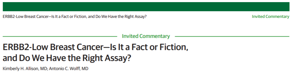[2]Allison KH, Wolff AC. ERBB2-Low Breast Cancer-Is It a Fact or Fiction, and Do We Have the Right Assay? [published online ahead of print, 2022 Feb 3]. JAMA Oncol. 2022;10.1001/jamaoncol.2021.7082. doi:10.1001/jamaoncol.2021.7082