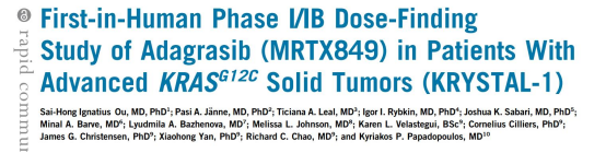 前言:AMG 510是第一款被批准用于治疗携带KRAS G12C突变的晚期NSCLC患者的靶向药物,结束了KRAS突变不可成药的历史。近期JCO杂志公布了第二款化合物——Adagrasib (MRTX849)治疗携带KRAS G12C突变的实体瘤患者的疗效及安全性。