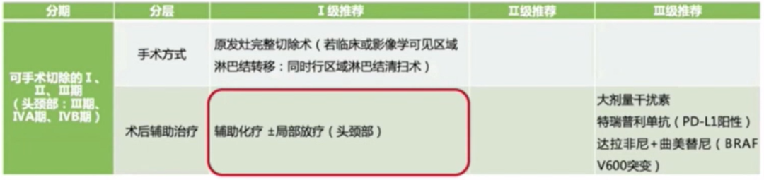 因此,对于黏膜黑色素瘤辅助治疗,CSCO指南主要推荐化疗±局部放疗(头颈部)。HDI、免疫和靶向治疗作为III级推荐。