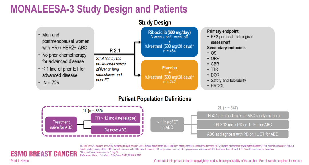 △MONALEESA-3研究设计及一、二线治疗定义