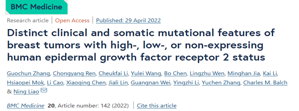 然而我们对HER2低表达患者的临床特征、分子特征其实知之甚少。广东省人民医院廖宁主任团队率先展开相关研究,对不同HER2表达水平的乳腺癌展开探索,不仅从临床病理特征上、还从分子特征上对HER2低表达人群进行了详细的阐述,为更好的认识这一亚型打开大门。2022年4月29日该文章以论著的形式发表在BMC Medicine,仅10天时间下载量就已达646次,可见备受关注。《肿瘤瞭望》现对本文进行介绍。