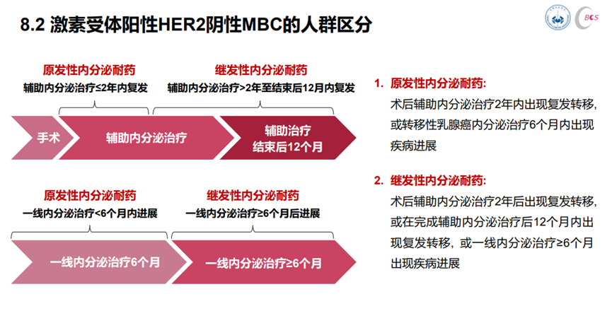 激素受体阳性HER2阴性转移性乳腺癌(HR+/HER2-MBC)患者的治疗需要考虑耐药的问题。HR+/HER2-MBC人群主要分为原发性内分泌耐药、继发性内分泌耐药两类(表8.2)。