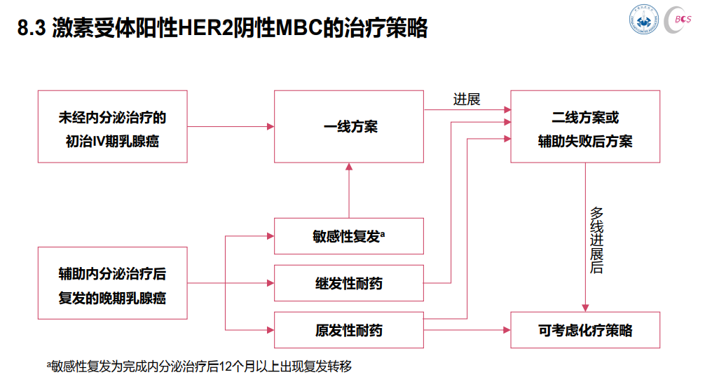 绝经前复发转移性乳腺癌激素受体阳性患者适合或需要用芳香化酶抑制剂进行内分泌治疗时,双侧卵巢切除手术,药物性卵巢功能抑制联合芳香化酶抑制剂都是可以考虑的方案。乳腺癌骨转移患者,如ER和PR阴性、术后无病间隔期短、疾病进展迅速、合并内脏转移及对内分泌治疗无反应者应考虑化疗。多线内分泌治疗失败的患者应该适时启动单药或联合化疗方案进行解救治疗。