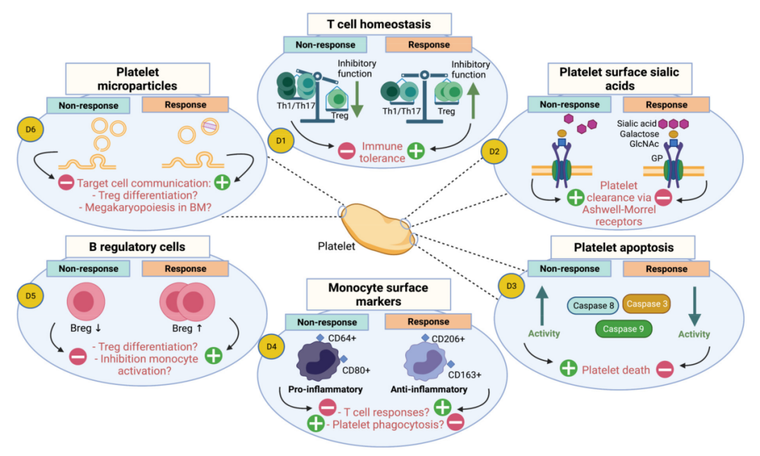 免疫性血小板减少症 (ITP) 是成人和儿童常见的获得性出血性疾病,抗体介导的血小板破坏被认为是 ITP 发病机制的关键,导致血小板调理作用以及随后在脾脏和肝脏中的巨噬细胞清除。此外,自身抗体和自身反应性细胞毒性 T 细胞 (Tc)也可以与骨髓中的巨核细胞结合,抑制血小板的产生。