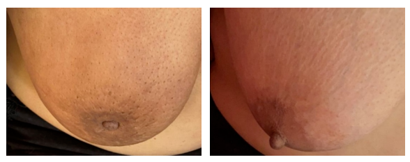 图5 右乳治疗前后变化(左:治疗前2020.12.15;右:治疗后2021.3.15)