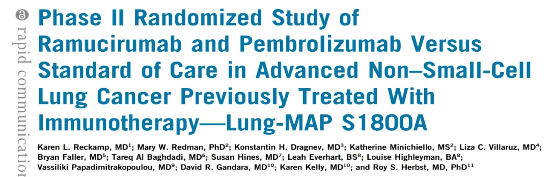 过去10年,以PD-1/PD-L1为代表的免疫检查点抑制剂革新了晚期NSCLC患者的治疗策略并成为近10年实体瘤治疗领域的最大进展。一旦耐药后,如何处理?从去年ESMO年会开始,陆续有学者探索了免疫检查点抑制剂联合血管靶向治疗的可行性。今年ASCO年会,Lung-MAP S1800A的研究数据更是在ASCO年会口头汇报后同步发表于JCO杂志。《肿瘤瞭望》将近期这一领域的进展进行盘点,以期为临床医生的治疗选择提供新的治疗思路。
