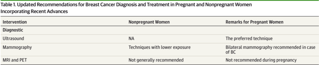 图1 JAMA Oncology上妊娠相关乳腺癌的影像学诊断推荐