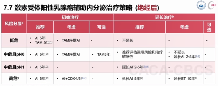 针对中危和高危患者,从目前的临床数据来看,仅5年的内分泌治疗是远远不够的。CBCS指南也强烈推荐对于这部分患者,要综合考虑其卵巢功能状态,耐受性和内分泌敏感性,进而决定延长内分泌治疗的方案。