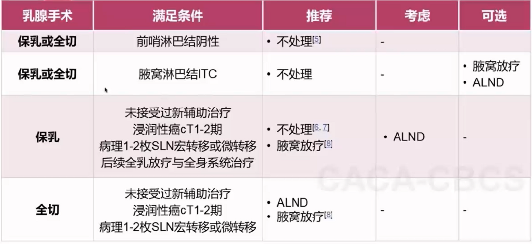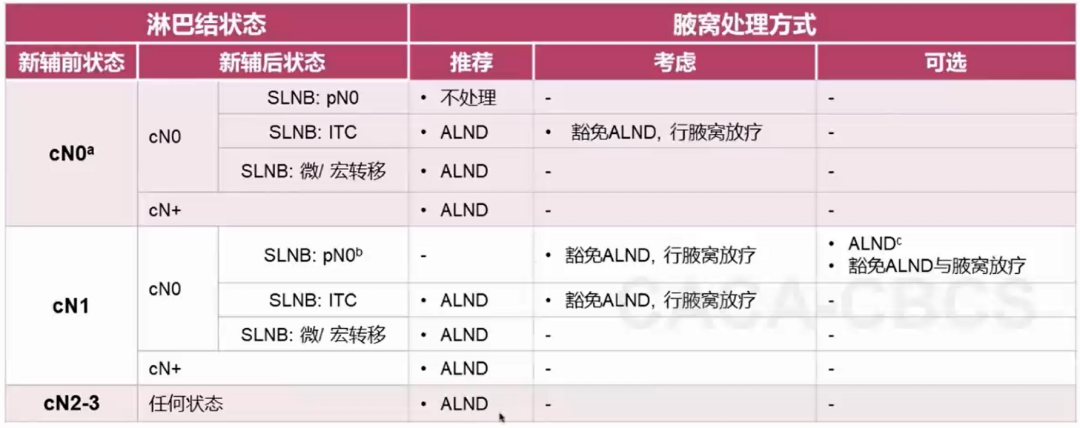 △保乳/全切及新辅助治疗后的腋窝处理方式