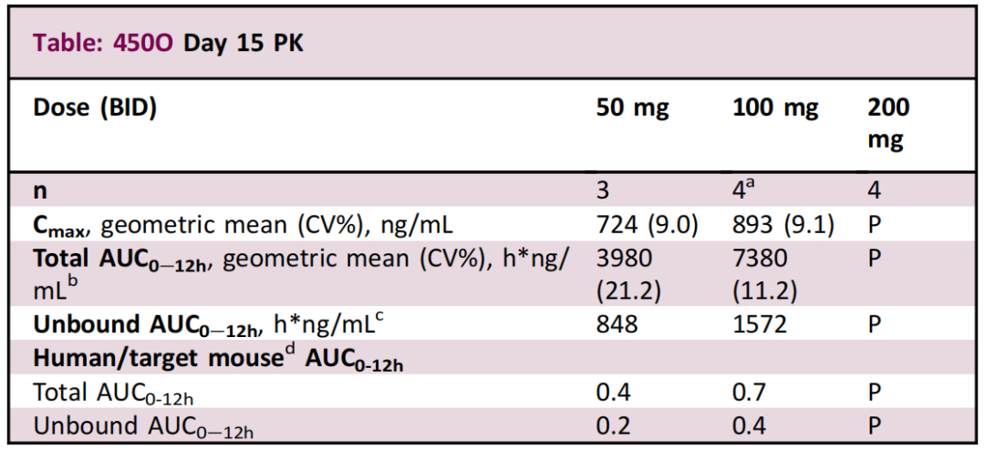 在1期试验中,有3/21例前列腺癌患者获得PR,2/21例获得SD,持续>6个月。在AZD5069 80 mg BD时,1/3例出现SD(16个月);在120 mg BD时,1/3例患者达到PR(RECIST: -31%,PSA:-89%,PFS:11个月);160 mg BD时,1/6例达到PR (PSA:-82%,RECIST:-20%,PFS:8个月),1/6例达到SD(8个月);在320 mg BD时,1/6例达到PR(PSA:-64%,PFS:5个月)。在AZD5069 160 mg BD联合ENZA(RP2D)的2期扩展队列中,1/11例患者的PSA下降了33%,另一个患者的SD达到11个月。所有PR/SD>6个月的患者既往均为ENZA治疗发生进展。