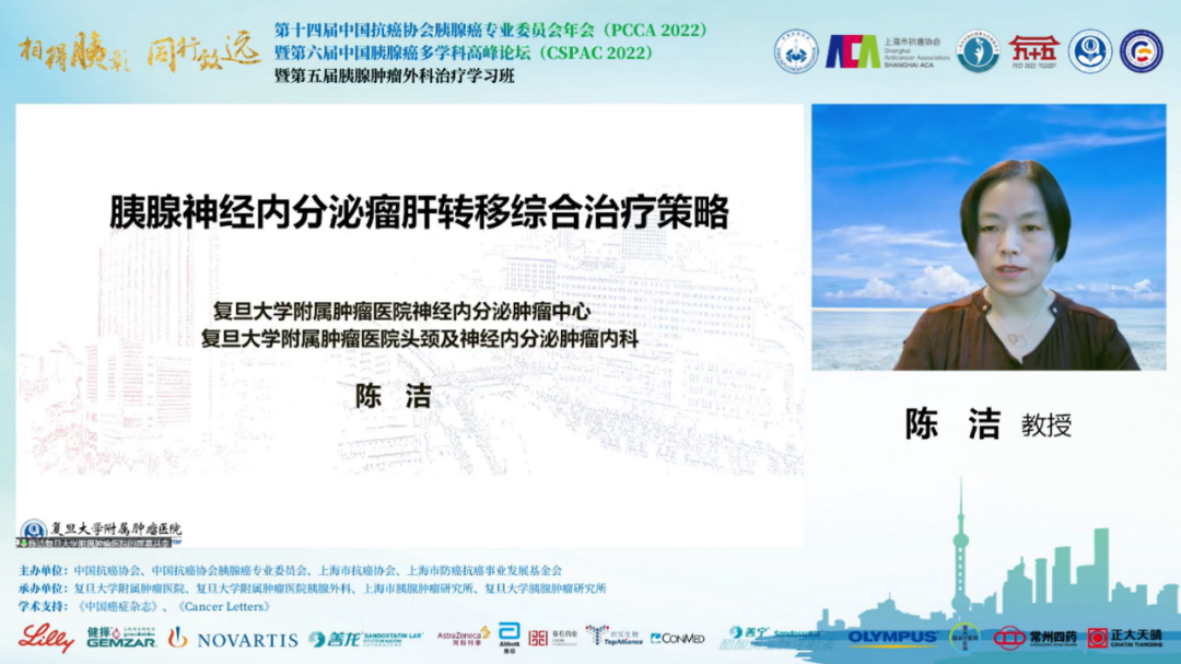 编者按:临床中,有大约70%的胰腺神经内分泌肿瘤(pNENs)发生肝转移,其中大约70%的肝转移患者为弥漫性肝转移,显著影响患者生存预后。然而,目前国内外指南并未针对pNENs肝转移治疗形成明确的、标准的治疗意见。在近日举行的第十四届中国抗癌协会胰腺癌专业委员会年会(PCCA 2022)上,复旦大学附属肿瘤医院陈洁教授带来了“胰腺神经内分泌肿瘤肝转移综合治疗策略”的精彩报告,分享了近年来的循证医学证据,以及其对此类患者诊治的临床经验和研究探索。