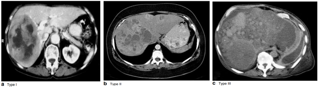 - 弥漫型(Ⅲ型):为两叶弥漫分布的转移瘤,通常无法手术干预,约占60%~70%。