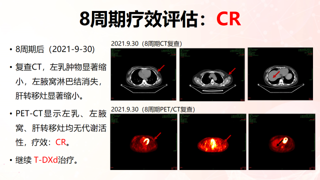叶松青教授:首先,对于这个患者,我不太赞同选择TCbHP方案作为一线治疗。因为晚期患者追求的不仅是局部缓解,还要考虑到患者的生活质量、后续的全程治疗等。个人认为,TCbHP双靶双化疗方案毒性较大,不良反应较THP方案多。还需要考虑TCbHP方案的疗程,如果患者使用了6个周期,后续的治疗该如何?所以我认为对于HER2+晚期乳腺癌来说,应选择THP作为一线治疗,可以用6个周期,8个周期,甚至10个周期,耐受性相对还好。TCbHP方案是新辅助治疗的标准方案,而不是晚期乳腺癌治疗合适的选择。其次,该患者一线应用TCbHP方案后进展,考虑到药物可及性,国内更多的专家会选择吡咯替尼作为解救方案。当然,最新版NCCN指南已经将T-DXd(DS-8201)作为优选推荐,T-DM1是可选推荐,如果T-DXd可及,我认为T-DXd是最好的选择。
