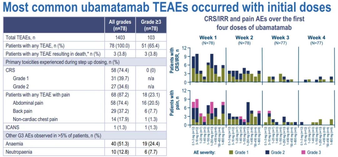 虽然74.4%的患者经历了1/2级CRS,但没有报道≥3级CRS病例。1例患者出现免疫效应细胞相关神经毒性综合征。