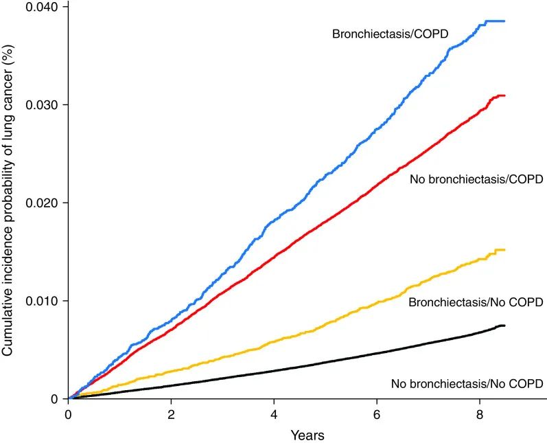 支气管扩张和无支气管扩张患者的肺癌发病率