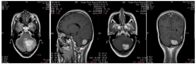 2021年6月:出现头晕头痛1周,检查颅脑增强MRI:左侧小脑占位,考虑转移瘤。