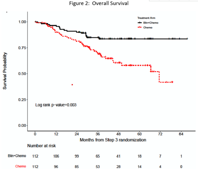 ECOG-ACRIN E1910研究III期结果:巩固治疗中加入Blinatumomab能改善微小残留病(MRD)阴性的新诊断B细胞急淋患者的总体生存