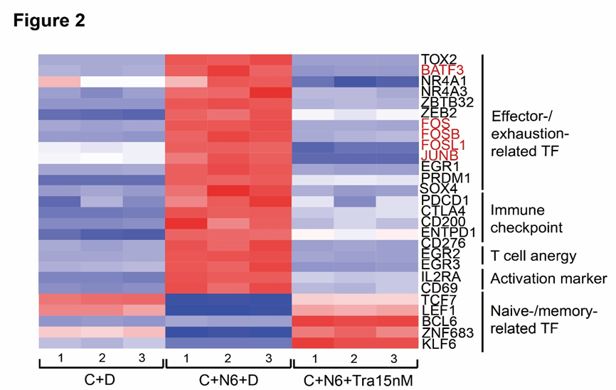 我们的研究提供了一种通过MEK抑制剂来优化CAR-T抗肿瘤功能的策略,并阐明了c-Fos和JunB在驱动CAR-T细胞耗竭和终末分化中的作用。
