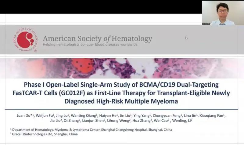 编者按:2022年12月10~13日,第64届美国血液学年会(ASH)在美国路易斯安那州新奥尔良隆重召开,作为全球血液领域中规模最大和内容最为全面的血液学顶级学术盛会,本届ASH一如既往地吸引了众多专家及学者的关注。在本次ASH大会上,上海长征医院血液病科杜鹃教授团队的研究“BCMA/CD19双靶点FasTCAR-T细胞(GC012F)作为适合移植新诊断多发性骨髓瘤高危患者的一线治疗方案的Ⅰ期开放标签单臂研究”入选了口头报告,这是本次ASH大会上入选骨髓瘤领域口头报告的中国研究,在血液学“殿堂级”的国际会议上展示了基于我国FasTCAR-T平台的双靶CAR-T疗法GC012F在高危多发性骨髓瘤一线治疗中取得的突破性进展。《肿瘤瞭望》特邀杜鹃教授介绍和点评该研究如下。