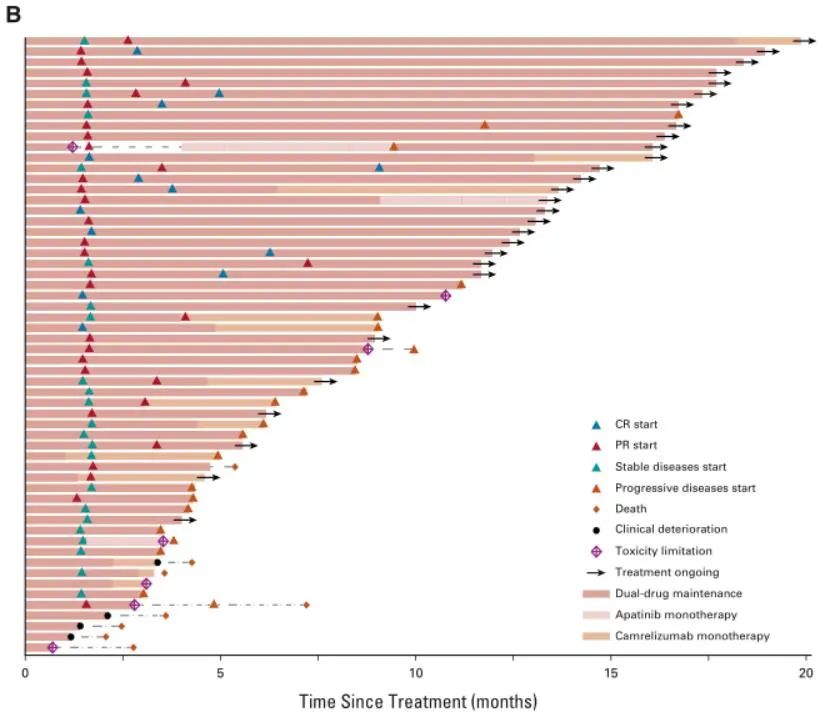 近期,中山大学肿瘤防治中心陈明远教授团队在国际顶级肿瘤学杂志Journal of Clinical OncologyJCO;2022年IF:50.717)在线发表研究论文,根据单臂Ⅱ期试验(NCT04586088)的结果,卡瑞利珠单抗联合阿帕替尼在复发性或转移性鼻咽癌患者中具有长期抗肿瘤活性,毒性可控。