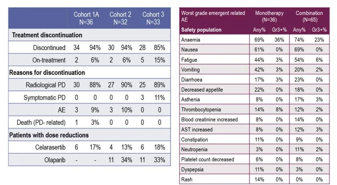 表1.ENGOT/GYN1/NCRI ATARI试验中队列1A、队列2和队列3中可评估患者的安全性和耐受性数据(ESMO妇科癌症大会2023,摘要号34O)