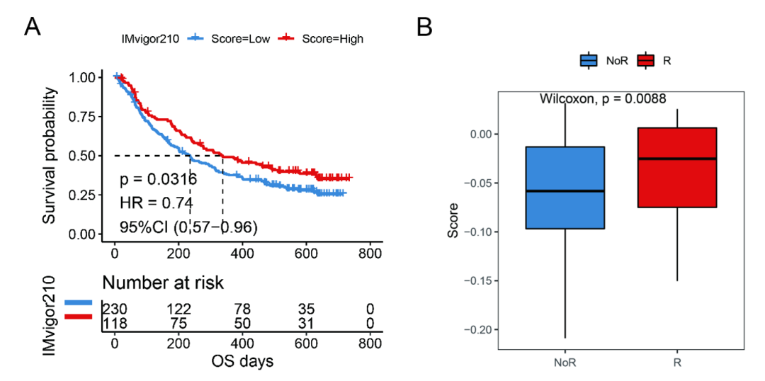 免疫治疗队列中线粒体能量代谢评分得分较低的患者预后较差,免疫治疗反应样本的线粒体能量代谢评分显着高于无反应样本,不同评分组对免疫治疗有反应的患者分布存在显着差异。