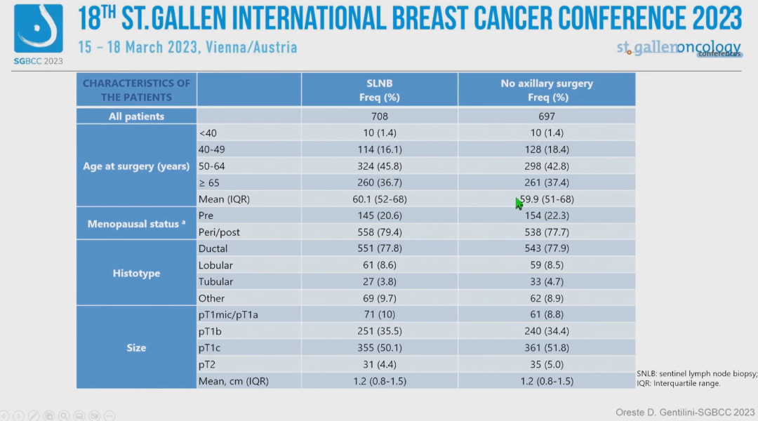 SOUND研究旨在评价小肿瘤乳腺癌患者能否避免包括SLNB在内的腋窝处理。该研究的主要入组标准是: