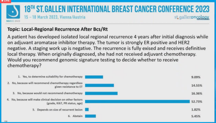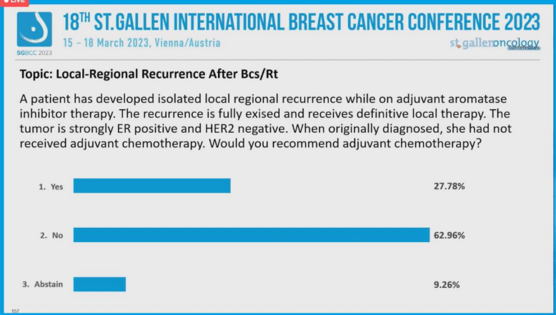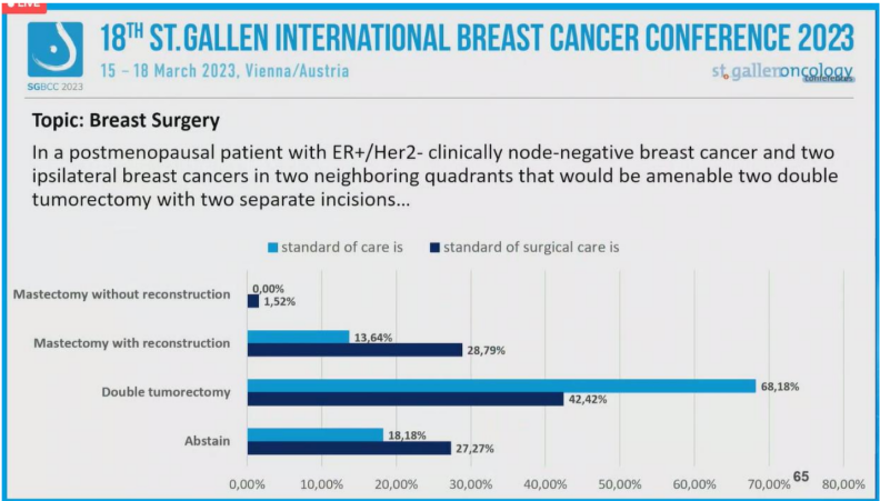 第18届St.Gallen国际乳腺癌大会(SGBCC 2023)于当地时间2023年3月15~18日在“世界音乐之都”维也纳举行。SGBCC汇聚全球各地的乳腺癌意见领袖,围绕最前沿、最具争议的早期乳腺癌诊治话题展开讨论和投票,形成每两年一更新的St.Gallen早期乳腺癌国际专家共识。大会的最后一天,专家投票压轴登场。《肿瘤瞭望》对外科治疗的专家投票部分做了如下整理。