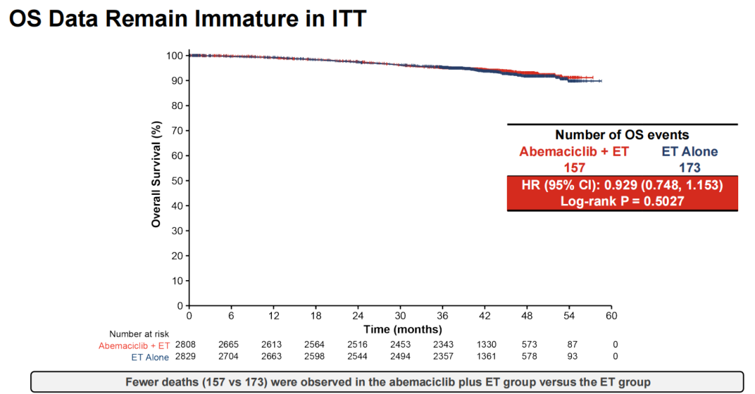 阿贝西利+内分泌治疗(ET)用于HR+/HER2-、淋巴结阳性、高危EBC:monarchE预设总生存期(OS)期中分析(IA)的结果,包括4年疗效结局