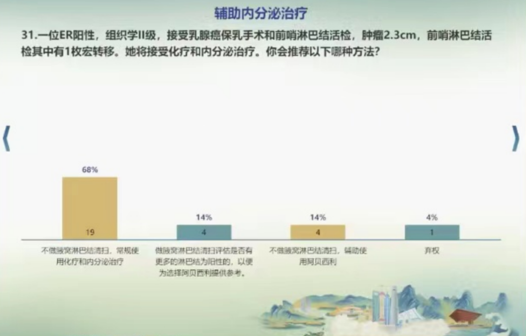 编者按:乳腺癌是全球女性中最常见的癌症类型,HR+/HER2-乳腺癌为临床患者最常见的亚型,约占整体乳腺癌患者的70%。对于复发风险较高的早期HR+/HER2-乳腺癌患者,应尽早采取必要治疗手段来预防其复发和转移。monarchE研究是首个证实CDK4/6i强化治疗有效的Ⅲ期研究,去年SABCS报道了4年随访结果,此次SGBCC大会也报道了该研究结果,并在大会投票环节,专家就阿贝西利辅助治疗相关问题进行了投票讨论,《肿瘤瞭望》特邀monarchE研究的中国leading PI、复旦大学附属肿瘤医院邵志敏教授对该项研究及SGBCC 2023和南北汇相关投票结果进行分析。