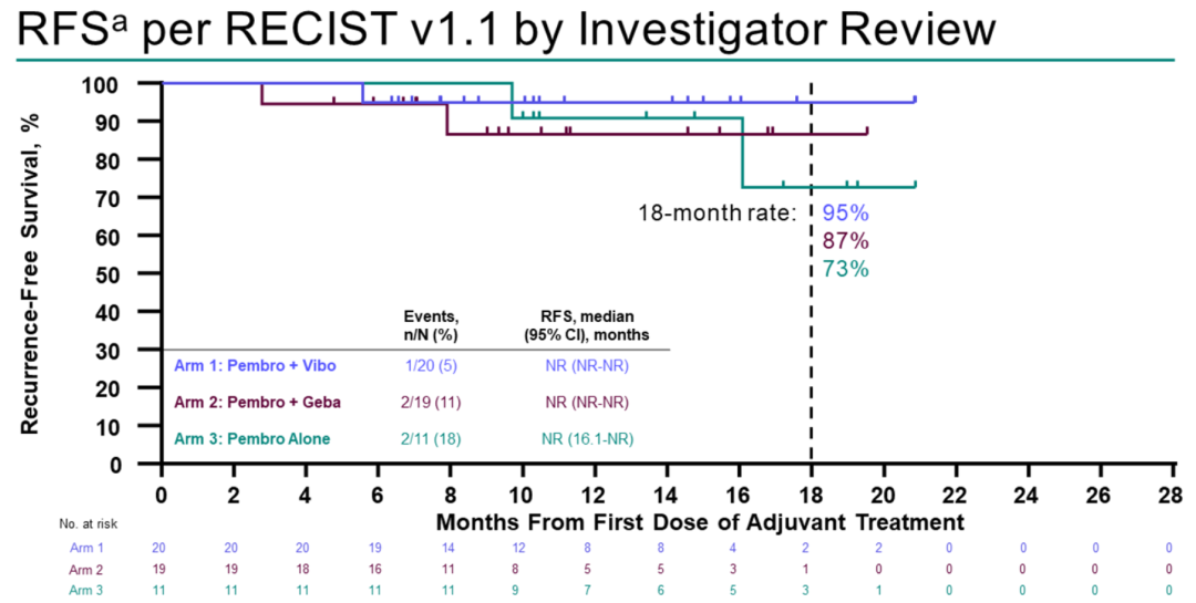 总结:TIGIT联合组中19%的患者出现了皮疹,溶瘤病毒组中20%的患者出现了注射部位疼痛。疗效和RFS数据如下图所示。另外TIGIT单抗+PD-1单抗的国际Ⅲ期辅助治疗临床研究已开始,中国在今年年中将同步启动,笔者所在中心为国内首家启动医院。