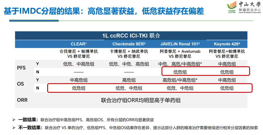 △基于IMDC分层的结果:高危显著获益,低危获益存在偏差(图源:讲者报告)