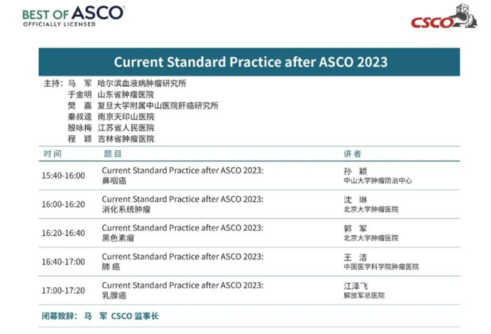 既往,我国没有CSCO指南时,很多中国专家都是根据国外指南指导中国的临床实践。而现在我们有了基于中国临床实践的CSCO指南,我们也会结合CSCO指南以及ASCO等会议的进展,来进一步指导恶性肿瘤的治疗。BOC/BOA会议上的“Current Standard Practice after ASCO 2023”环节会对肺癌、乳腺癌、消化系统肿瘤等领域的进展解读和介绍,我们会邀请行业内的专家用20~25分钟的时间对相关领域进展进行梳理,告诉各位参与专家当前的行业治疗标准。