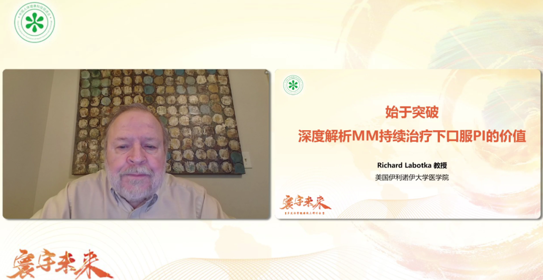 第一位讲者是美国伊利诺伊大学名誉教授Richard Labotka博士,他的主题演讲为《始于突破-深度解析多发性骨髓瘤持续治疗下口服PI的价值》。他在分享中指出:蛋白酶体抑制剂(PI)是治疗多发性骨髓瘤(MM)的有效药物。但在实验研究和临床实践中,硼替佐米的周围神经病变(PN)发生率非常高,这种药物副作用会积累且导致停药,患者无法持续PI治疗而最终影响疾病的治疗效果。伊沙佐米(恩莱瑞?)是全球首个可口服的蛋白酶体抑制剂。最初选择开发伊沙佐米的初衷是:首先伊沙佐米是一种可逆性蛋白酶体抑制剂,其结合动力学特征有利于改善组织分布,从而提高对肿瘤的穿透力;其次口服制剂是一个巨大的优势,作为唯一口服PI,伊沙佐米治疗不需要患者到医院进行给药,提高了患者治疗的便捷性和依从性且治疗负担小;第三减少了药物毒性(特别是PN),适合长期使用。