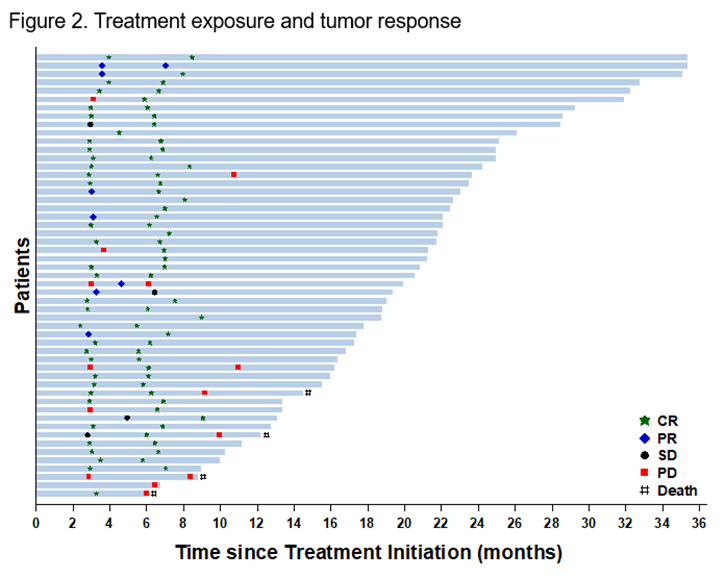 图1.卡瑞利珠单抗联合低剂量阿帕替尼和培门冬酶序贯放疗在早期NK/T细胞淋巴瘤患者中的治疗应答
