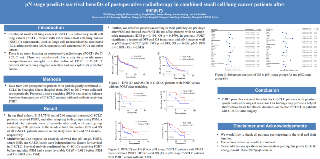 张伟教授在访谈中介绍了摘要号EP13.01-01的研究,内容聚焦pN分期预测手术后复合型小细胞肺癌患者术后放疗的生存获益。