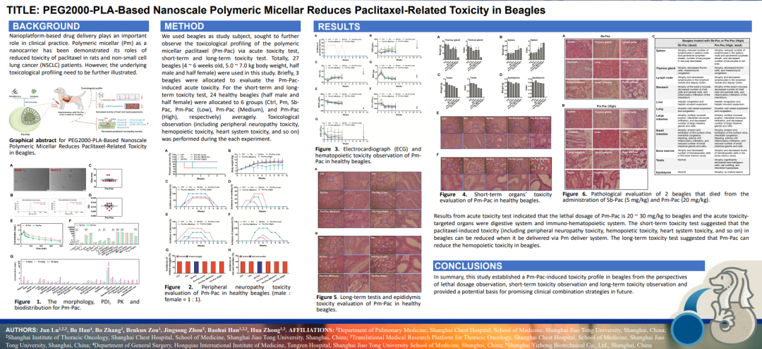 陆俊教授介绍了通过曲美替尼联合安罗替尼对KRAS突变型非小细胞肺癌(NSCLC)进行MEK/RTKs通路共抑制的研究发现(摘要号P1.02-02),以及TP53突变NSCLC患者转移的基因特征摘要号EP06.03-01),另一项研究主题为“PEG2000-PLA纳米聚合物胶束降低紫杉醇相关毒性”(摘要号EP02.01-12)。
