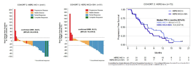图4.HER2 IHC 1+和IHC 2+/ISH-患者接受T-DXd治疗的疗效