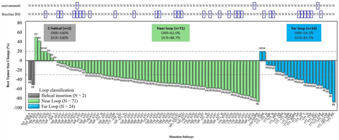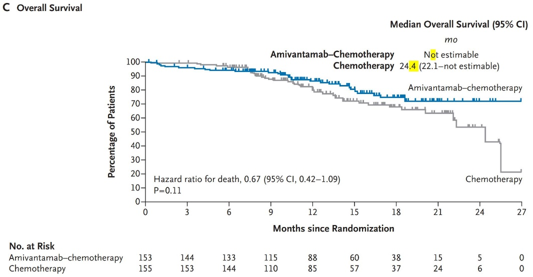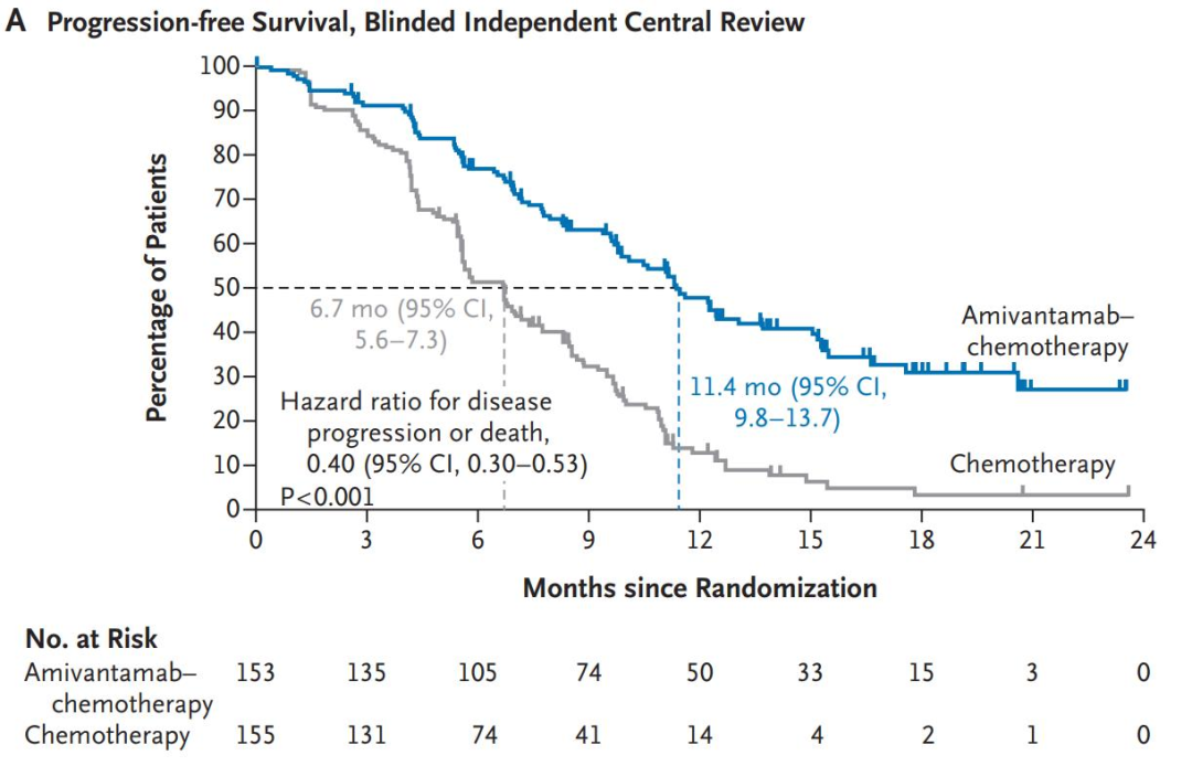 研究结论:对于携带EGFR第20外显子插入突变的晚期非小细胞肺癌患者,化疗基础上进一步联合Amivantamab有更好的疗效。
