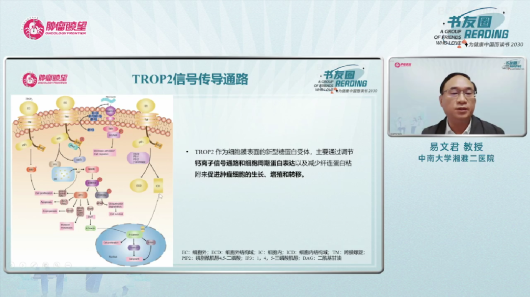 编者按:2023年11月8日19:30,西安交通大学第一医院杨谨教授(主持)与天津医科大学肿瘤医院贾勇圣教授(讲者)、中南大学湘雅二院易文君教授(讲者)共同做客《书友圈》,探讨Trop-2 ADC作用机制及临床应用的相关问题。