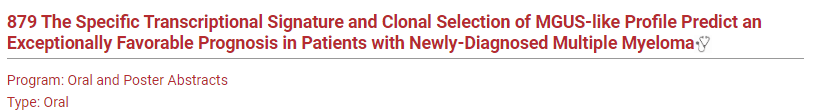 编者按:在2023第65届美国血液学年会(ASH)上,中国医学科学院血液病医院安刚教授团队的一项研究(abstract 879)深入探讨了表现为MGUS-like特征的新诊断多发性骨髓瘤(NDMM)患者的预后,该研究引起较多的关注并入选了大会口头发言,为了解该研究内容,《肿瘤瞭望》特整理该摘要内容并邀请安刚教授进行点评。