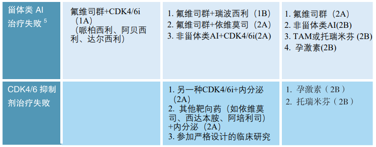指南建议氟维司群+CDK4/6抑制剂作为AI治疗进展后的高级别推荐方案