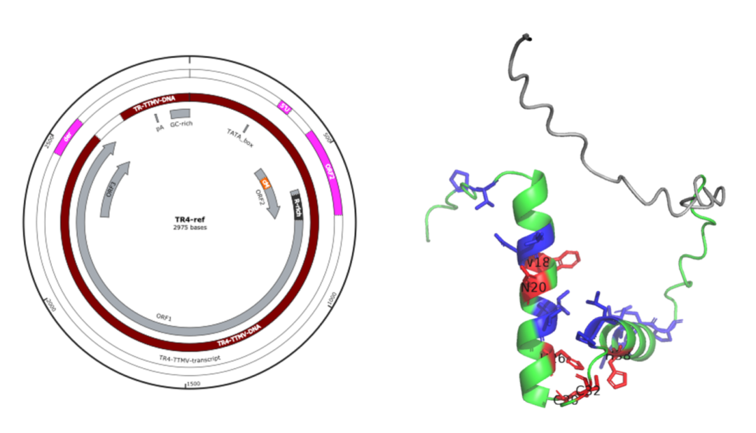 共对7例TTMV::RARA-APL病例的病毒基因组插入序列,TTMV::RARA的基因和蛋白序列进行分析。用细胞实验验证TTMV整合到人类基因组的致病序列的基因表达调控区域和蛋白编码区域的功能,以及融合蛋白的功能。