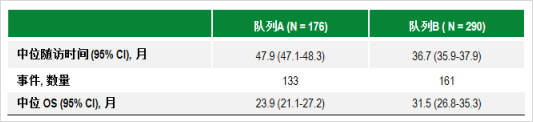 表1.50mg(队列A)、75-100mg(队列B)的中位OS结果
