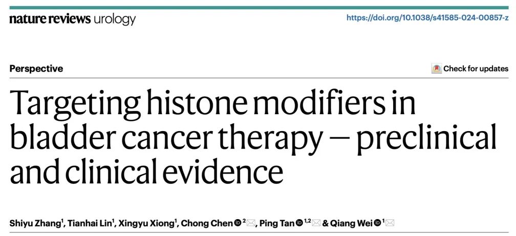 近日,华西医院泌尿外科魏强教授团队与四川大学华西生物治疗国家重点实验室陈崇教授共同在Nature Reviews Urology(IF:15.3)发表论文Targeting histone modifiers in bladder cancer therapy—preclinical and clinical evidence,系统阐述了靶向组蛋白修饰因子在膀胱肿瘤中的治疗潜力。总结了具有临床转化价值的相关靶点以及潜在生物学机制,同时探讨了目前相关临床试验的初步结果以及表观药物应用的挑战。
