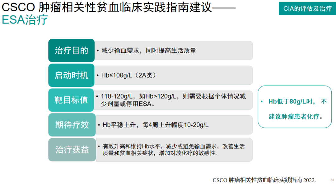 CSCO肿瘤相关性贫血临床实践指南建议——ESA治疗